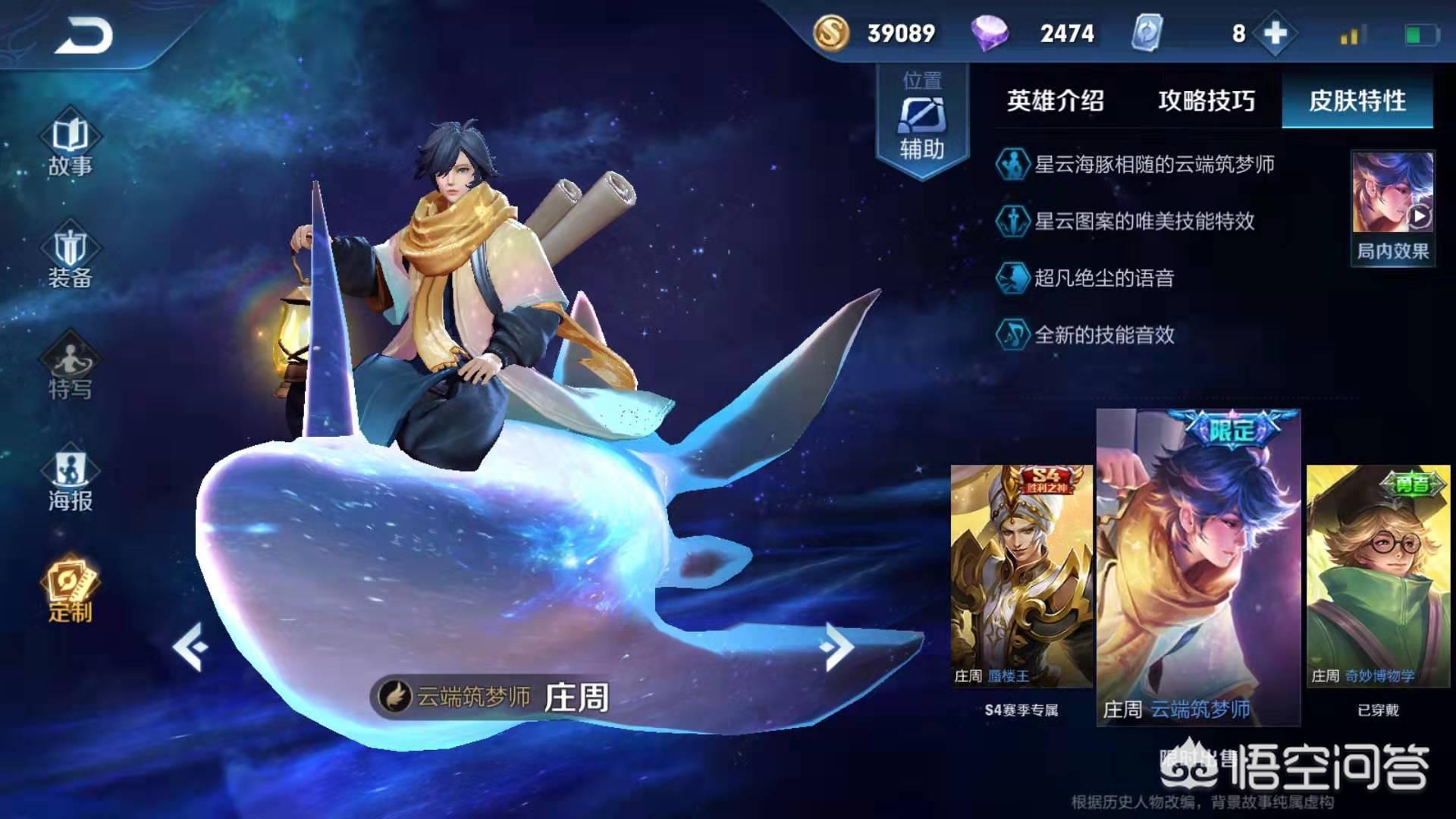 首先第一款就是庄周的云端筑梦师,这款皮肤在今年五五开黑节期间被爆料过即将返场,但是由于刚刚推出了庄周的六元皮肤奇妙博物学,导致这款限定皮肤的需求量急剧下降,从而导致返场取消,不过这款皮肤较之庄周其他皮肤效果要强上很多,所以还是有返场机会的。