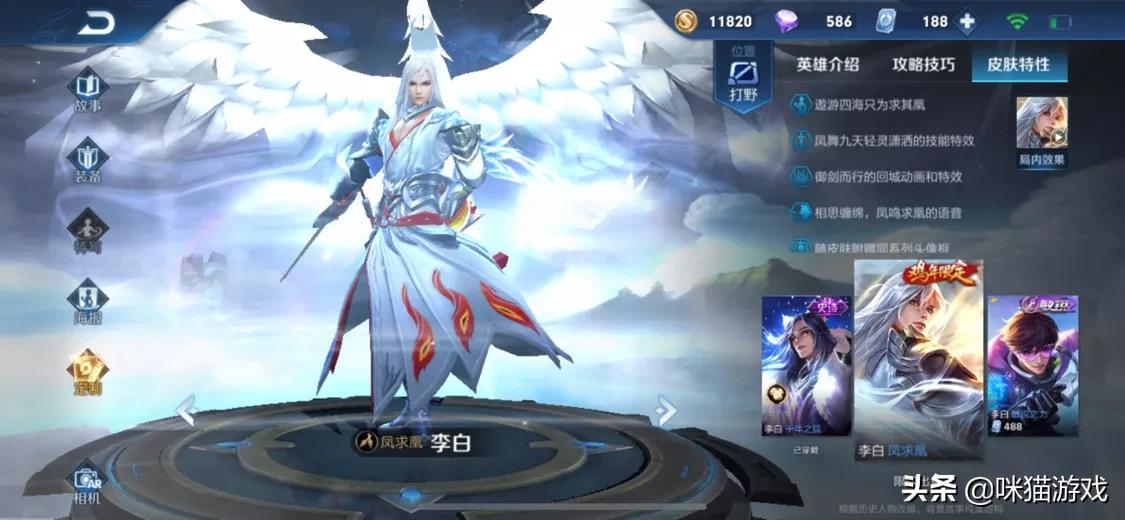 至尊宝大战凤求凰相信大家都知道,凤求凰这款皮肤一直是李白玩家的最爱。只要有这款皮肤返场机会,它的呼声都不小,再加上李白没有新皮肤上线,这款皮肤对玩家也更有吸引力!周年投票活动有机会的话,返场几率很大!