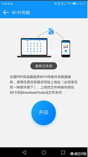 3、单击第二个选项按钮,可以提供WiFi传输共享数据服务,在同一网络环境下,可将文件上传至手机。