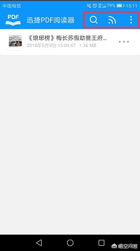 2、运行界面中,右上角有三个选项按钮,单击第一个放大镜按钮,可以将原来看过的PDF文件进行搜索查找。