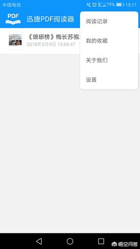 4、单击第三个选项按钮,会弹出四个选项:阅读记录、我的收藏、关于我们、设置来提供我们选择。