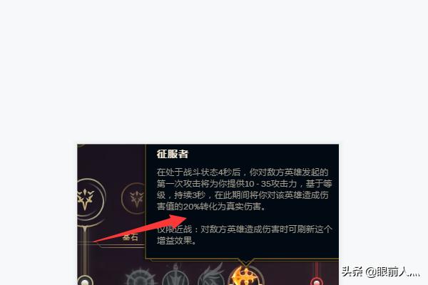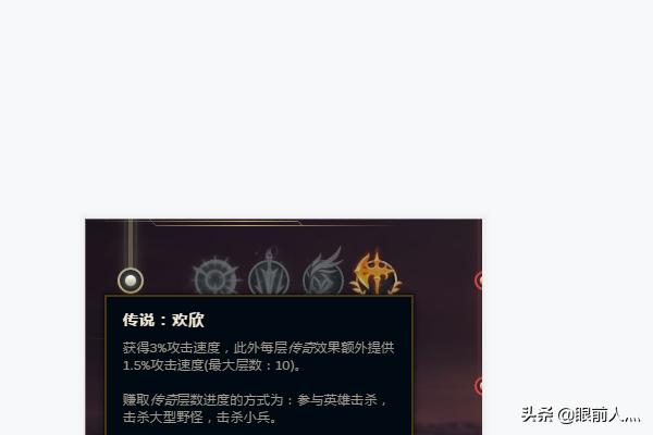 韧性:获得5%韧性,每层传奇额外提供2.5%韧性(最大层数10),可通过参与英雄击杀,或击杀小兵和大型野怪获得。