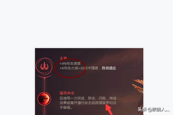 6、副系选择主宰,爆发伤害和近身手段,+9%攻击速度,+6攻击力或+10法术强度,自动适应;