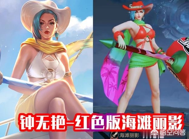 钟无艳,钟无艳的海滩丽影皮肤是看起来御姐风格的一款,白色的遮阳帽,黄色的丝巾,白色的小背心,淡黄色的小裙子,这样的搭配让人看起来心旷神怡,而玩家自创的红色版的海滩丽影就显得十分的非主流了,红色的遮阳帽,五彩缤纷的丝巾,红色的小背心,绿色的小裙子,这些颜色搭配起来也是着实奇怪,想不明白的那种红配绿,小编觉得这套红色版的海滩丽影真的是丑哭了。