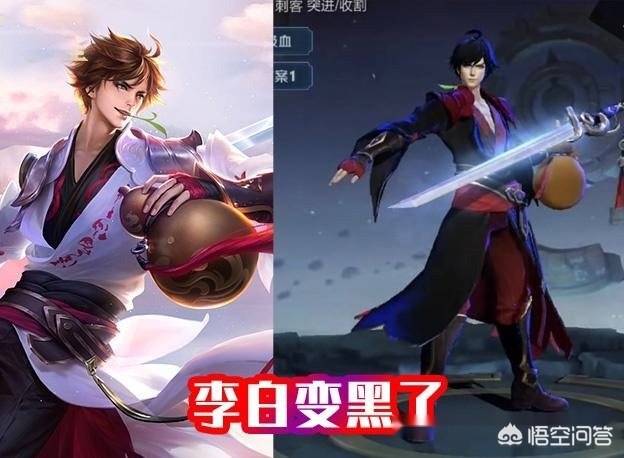李白,在游戏中李白也是一位打野的英雄,一身白衣外加一头干练飘逸的短发,才能更加的衬托出李白的帅气,这样的装扮才能符合李白本身的气质,而玩家自创的皮肤李白变黑了,不仅是在发型上有所改变,就连服饰方面也改变了,统统都以黑色为主,但是黑色的李白却不如白色的李白帅气,小编还是喜欢白衣的李白。
