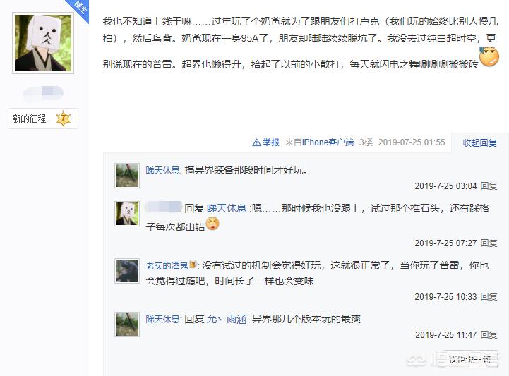 总的来说这款游戏现在坚持的就是一种情怀,假如磨没了这种情怀也就离脱坑不远了,放宽心态,当做游戏来玩这游戏就可以了。
