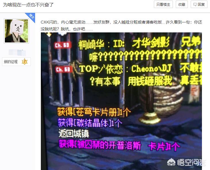 对于爆到一张值钱的卡片,本来想炫耀却换来冷落而且还看到一句还没脱坑,或许或许很多玩家都体会的到吧,游戏的快乐只能分享才能体验游戏的乐趣,如果没人愿意和你分享那也是一个人的独角戏,快乐痛苦都是自己。