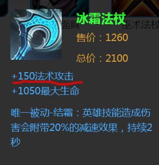 看下图的装备。冰霜法杖,它的法术攻击是150。法术攻击可以提高法师的技能伤害,这个伤害数值按照加成的比例来增加。