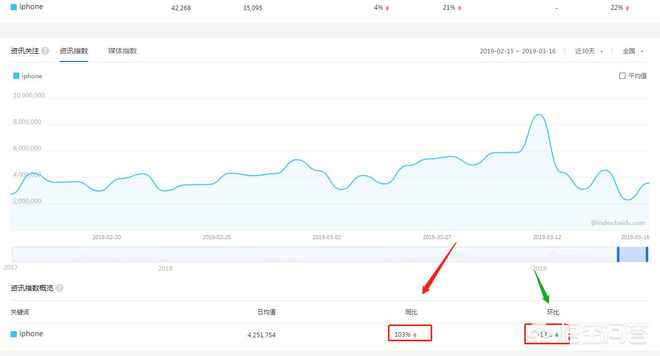 不过百度的资讯指数环比下降14%,只能说明被百度索引关于“iPhone”的资讯在降低。这也只是说明被百度收录的“iPhone”资讯在下降,这和人们对苹果对热度并没有直接关系。做网站SEO的人才会比较关注百度指数,用来优化网站,或者是网站SEO优化排名。