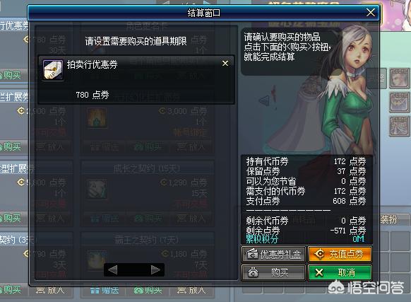 DNF新增的拍卖行功能,商城中出售的优惠券,需要780点券(代币券)购买。