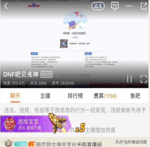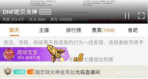 DNF贴吧吧主开启直播首秀,热度超100W,旭旭宝宝5发火箭支持,他有望成为大主播么