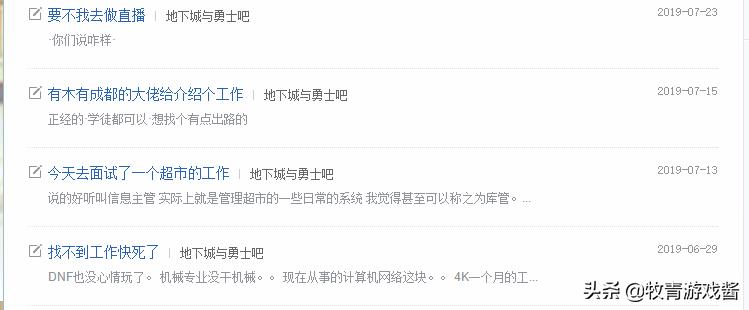 正所谓一天不知一天事,前段时间DNF吧主才在网上找工作,而且还是在贴吧里找吧友介绍,千万人关注的大吧主居然沦落到找吧友介绍工作。就在上个星期还说成功入职,只不过是一个超市的“信息主管”,好像是在成都的工作月薪3300块。
