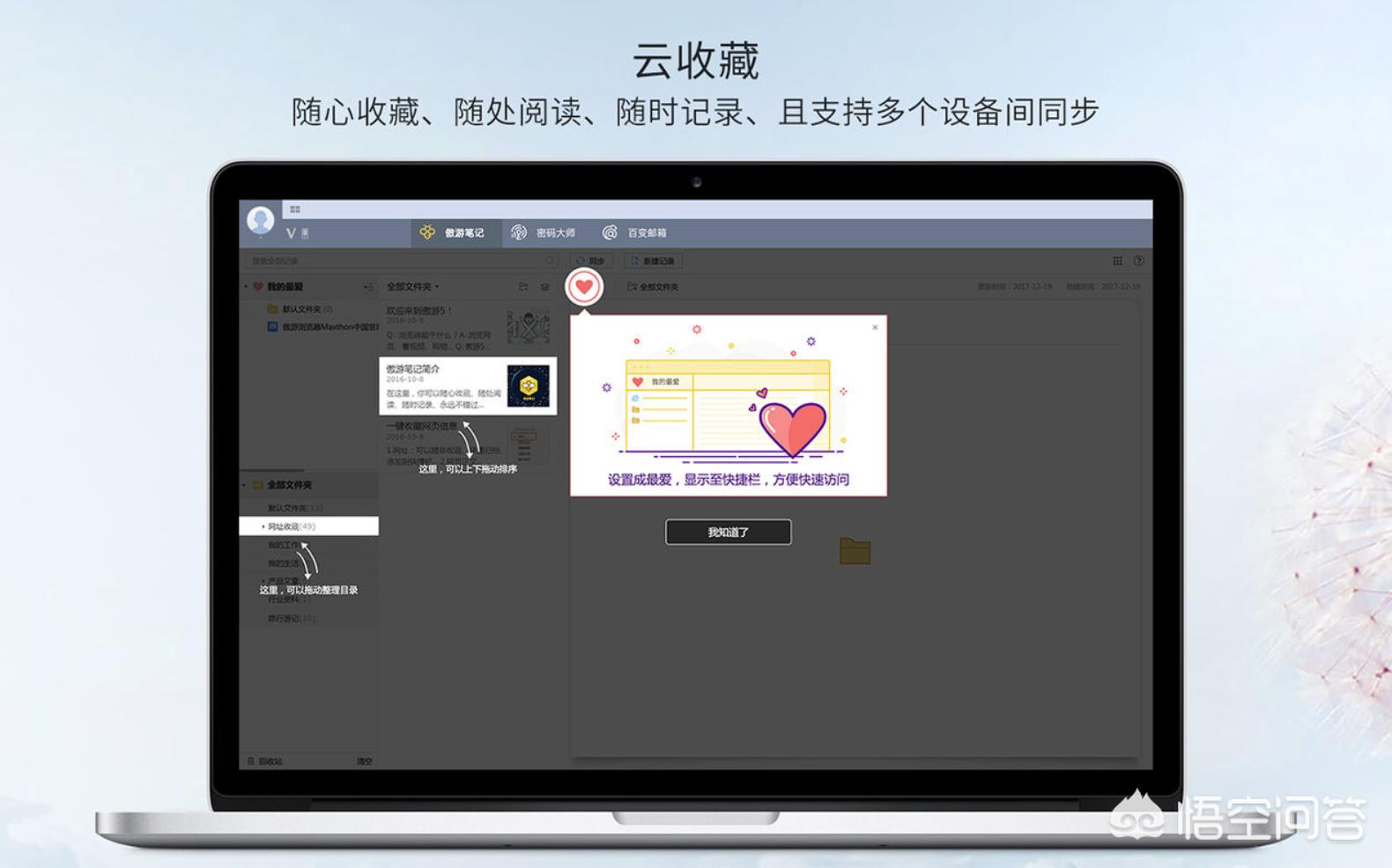 云收藏和笔记功能,通过傲游云收藏服务,无论身在何处,都可以随时获取用户收藏夹的最新内容。不同于系统收藏夹的加密文件存储格式,帮助用户更好的保护个人隐私。自带的傲游笔记,可以随心收藏,随处阅读,随时记录。