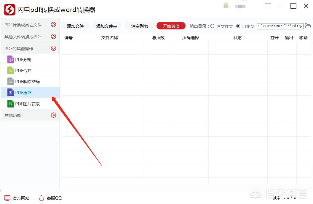 2、成功安装后打开软件,在左侧功能选区中选择“PDF的其他操作”-“PDF压缩”。