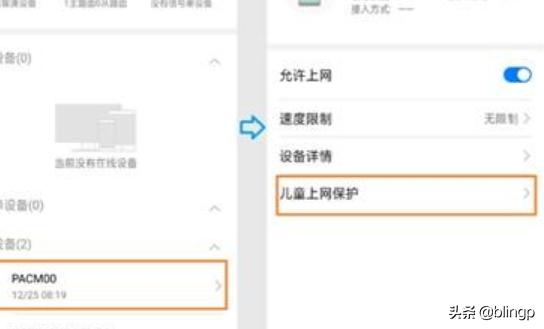 1、您也可以点击接入设备,在接入设备列表中点击您想要设置的设备,点击儿童上网保护,进入儿童上网保护设置页面;