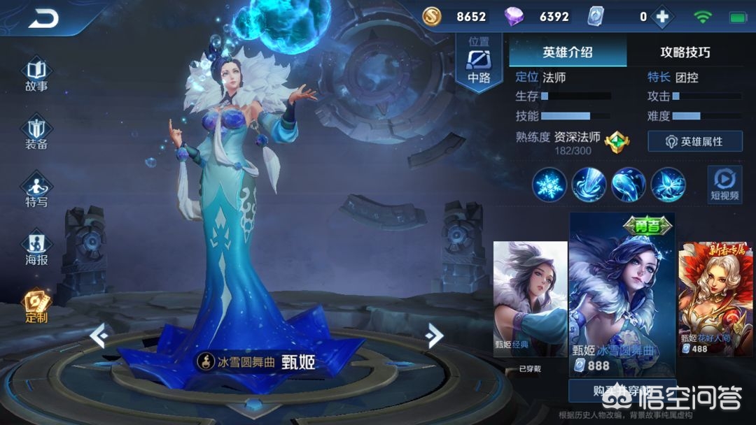然后第二款则是甄姬的冰雪恋舞曲了,这是和干将莫邪冰霜恋舞曲同一个系列的皮肤,在峡谷之中也是很不错的,但是标签却还是勇者级别,特效可想而知,虽然有一点,但是不咋样,因此如果能够升级成为史诗级别的话,绝对是很不错的!