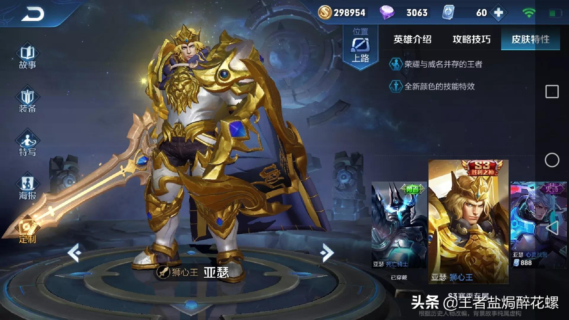 前几个赛季的黄金色的赛季皮肤,如:庄周的蜃楼王、亚瑟的狮心王、扁鹊的炼金王等,还是口碑很好。