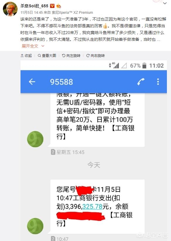 杀意sol君微博晒出赔偿斗鱼违约金339W,网友:看到余额放心了!你怎么看