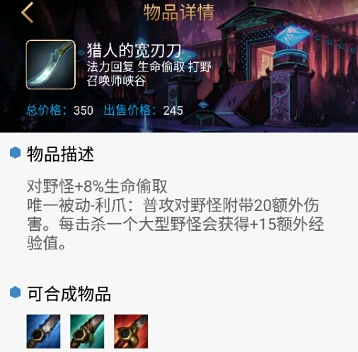 但是作为打野皇子前期的清野效率一般,而且没有回复技能,不像剑圣有W、挖掘机可以遁地回血、豹女自己有奶等等。看看现在的打野刀和猎人护符吧!