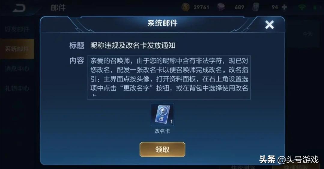 在游戏里面使用一些违规的名字,都会被王者荣耀的系统发送邮件,要求强制改名字的,如果名字不修改的话,就会被王者荣耀官方修改为违规昵称,大多数都会送一个改名卡,让自己修改,但是我觉得这位玩家的这个名字,王者荣耀官方肯定不敢封号,毕竟连自己的老板都封号,岂不是自己的饭碗都不要了。