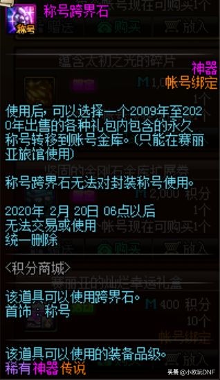 DNF积分商城上架“称号跨界石”,但需要2500积分兑换,有哪些称号值得跨界