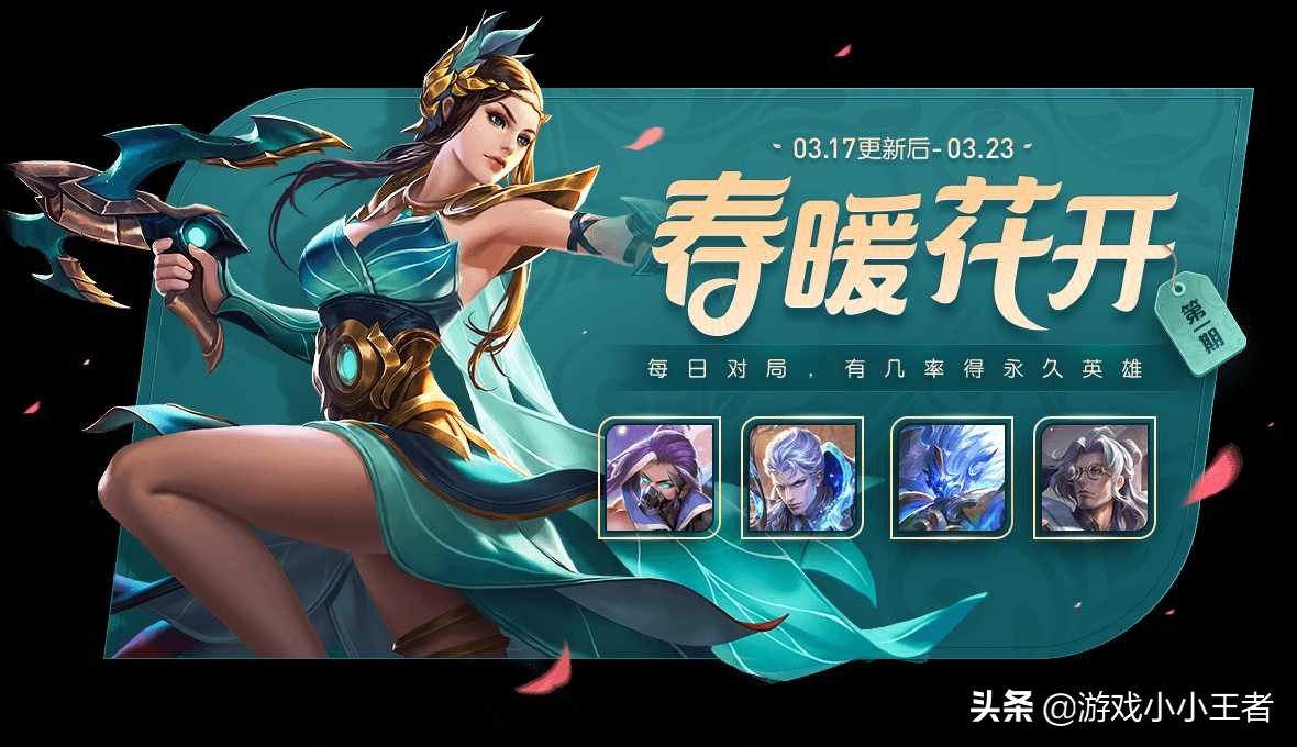 首先是春暖花开活动,参与活动,有机会获得永久英雄/皮肤。时间是更新后至4月13日,活动分为四期,每期持续一周,完成每周的任务收集暖春幸运树来兑换礼物。四期活动最多可以收集68个暖春幸运树!