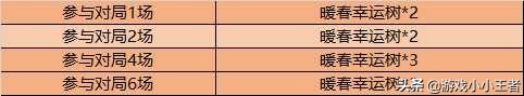 每天登录游戏会获得1个暖春幸运树,每天参与对局可以获得不同数量的暖春幸运树,参与6局对局游戏,就可以将当天的暖春幸运树全部拿到手,每周可以最多获得17个暖春幸运树。