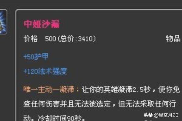 3、中期核心装。法师鞋子+沙漏+耀光或者巫妖祸+女神泪。耀光是巫妖祸的小件,如果你补刀和人头多的话肯定可以做出巫妖来,不然就只能出耀光。顺便说一下就是沙漏直接裸出,也可以出完耀光之后把小件合成。