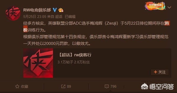 在近期一则消息引起了非常多人的热议,那就是RW的ad选手在韩服打rank的时候因为骂人被doinb举报,后面RW俱乐部直接给他处以罚款。要知道作为职业选手在打rank的时候是要起到表率的作用,不然受到的处罚也是比普通玩家要严厉很多。