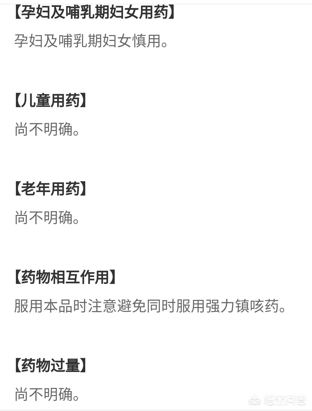 其次,关于复方甘草片的副作用,我们也可以从它的药品说明书中的“尚不明确”可以看出,这药是必须要慎用!