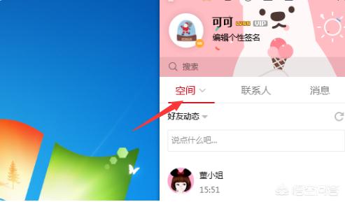 1、打开电脑QQ,点击左上角“QQ空间”进入电脑QQ空间。
