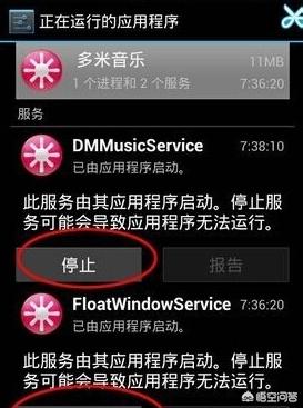 3、进入到手机的正在运行的应用程序界面中后,我们可以点击当前页面中的停止按钮,停止该软 件运行。