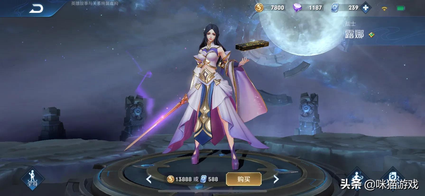 第五款皮肤就是露娜的皮肤!这款皮肤也还不错!价格比一般的史诗级别皮肤低一点!但是如果玩不好露娜就不要购买了,不然没法使用这款皮肤!所以是否购买这款皮肤玩家自己斟酌!