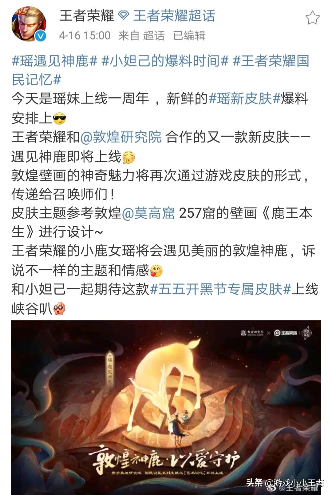 五五开黑节已经快要来临,目前王者荣耀官方已经确定了开黑节皮肤是瑶的遇见神鹿,这是王者荣耀联合敦煌研究院推出的一款国民记忆系列皮肤。