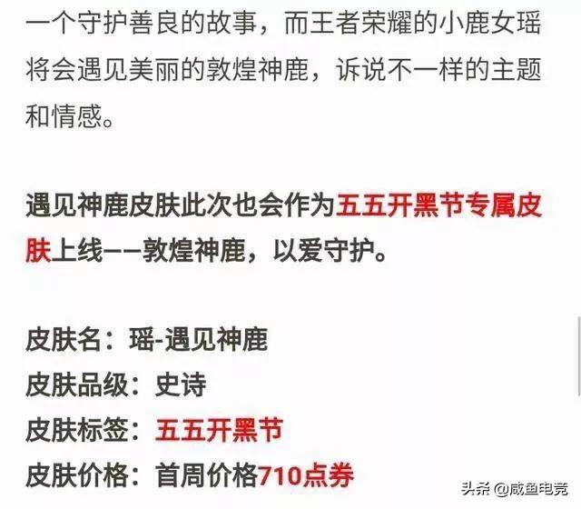 王者荣耀不知不觉已经上线四年多了,在这四年期间游戏不断优化更新,英雄也是不断推出,英雄已经达到一百个了,最近活动也是不断的推出,再过一个星期多就到五五开黑节了,本年的五五开黑节活动皮肤属于辅助英雄瑶所有,名字叫遇见神鹿,这款皮肤品质是史诗。