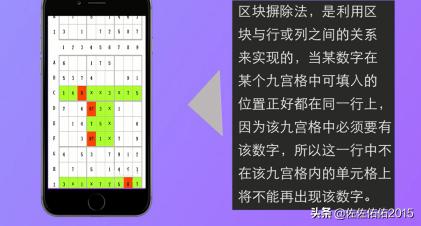 2、基础摒弃法是直观法中最常用的,单元排除法就是在某一单元中找到能添入某一数字的唯一位置。可以分为行摒除列摒除和九宫格摒除。