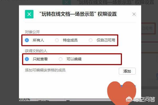 3、可以赋予所有人编辑或者观看权限,根据需要选择相应的权限设置;