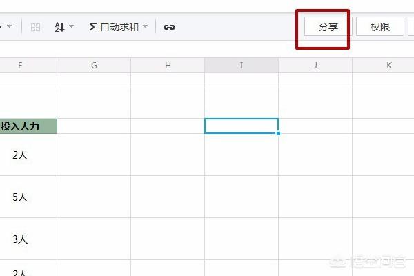3.点击“新建在线表格”选项后,软件就会新建一个excel表格,这个时候的表格是没有名称的,需要在图示位置对其进行重命名,然后在表格中输入相应的内容。输入好信息后,点击页面右上方的【权限】选项,如图所示。