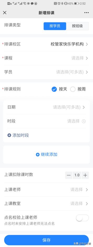 首先,它无需你用电脑排课,用手机就可以了,而且连APP都不用下,直接在微信里操作,老师不受空间时间的限制,能随时随地排课,满足我们小学校灵活的课程安排。