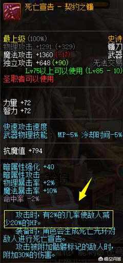 1、85史诗镰刀,死亡宣告,圣职者武器。