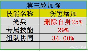 韩服体验服5月15日版本,再次对25仔改版,光兵对自己的25%的BUFF取消,但是光兵专属技能伤害增加28.75%,在加上队伍协同改版,享受34%的队伍加成。