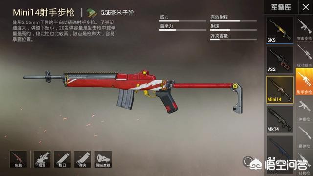 要说Mini14这把狙击枪的话,游戏君印象非常深刻~因为这把枪非常容易控制,虽然开火的时候枪声较大,但是弹匣容量不错,而且最关键的是足够稳定,所以无论是新手还是高达王牌段位的老玩家,对于这把武器都非常喜爱!而这次亮相《和平精英》的Mini14呢,红色的主流搭配让人拍案叫绝,还是相当的抢眼哦~嘿!