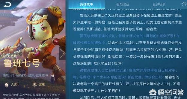 上图既是关于鲁班大师的爆料,看的出来官方除了说名字,还说了鲁班大师精通机关术,并且是稷下星之队的重要成员,那么我们可以猜测鲁班大师可能像米莱狄一样,是一个操纵机关的英雄,至于是法师还是刺客都有比较大的可能,接下来我们再来看看鲁班七号的背景故事,这里面其实早就有了鲁班大师这个名字。