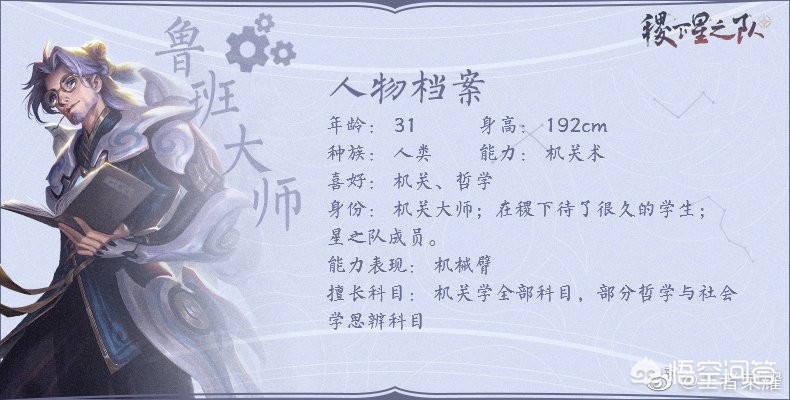 鲁班大师,定位 坦克,年龄31岁。人物简介机关大师,星之队成员,擅长科目机关学,部分哲学社会思辨学。哇哦,好厉害!于鲁班七号关系:鲁班七号的缔造者。