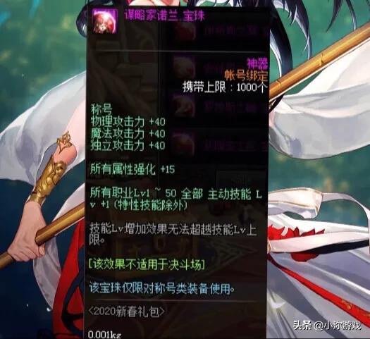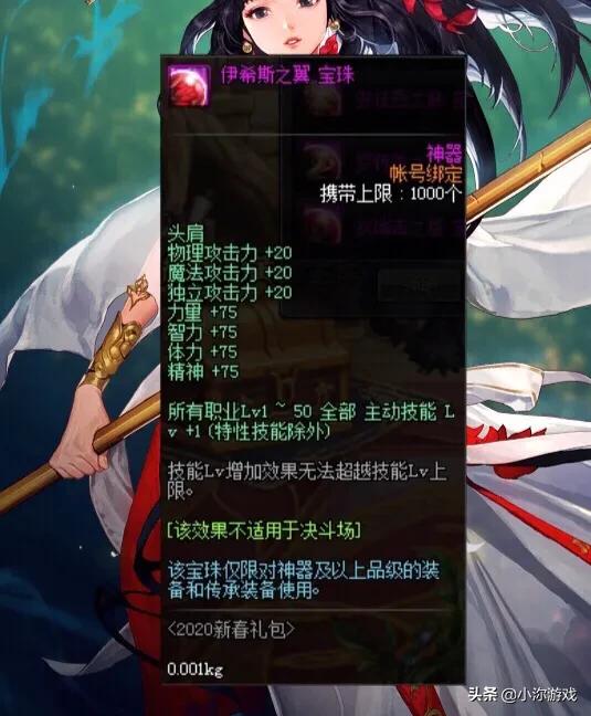 (2)肩膀宝珠,相比去年增加了20点三攻,少了5%的暴击,还有75的四维,1-50技能等级*+1,算是所有宝珠中,提升率最高的,可以作为第一选择。然后腰带宝珠,四维45点,技能等级1-50加1,错过了国庆宝珠的话,也是可以选择的。