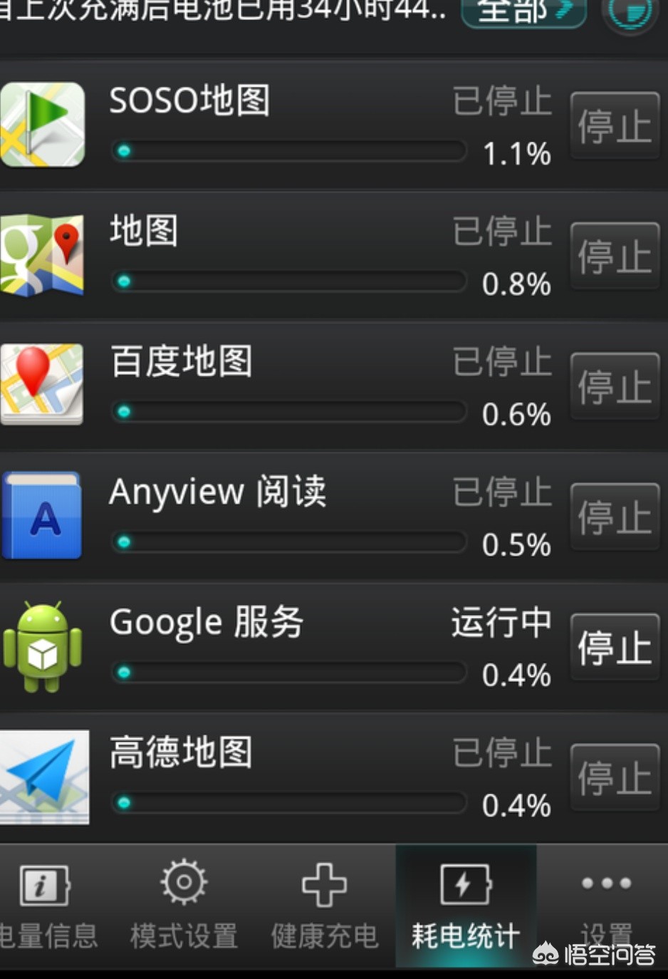 下面看一下我用专门的电池检测软件,对高德和百度地图同时打开,同样的使用时间后的耗电情况: