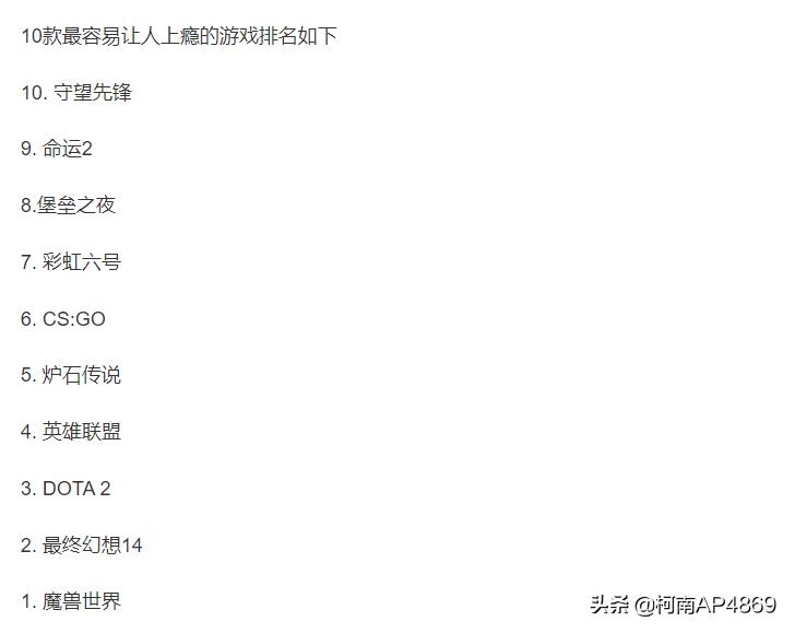一款游戏要说怎么样才能称的上成功,我认为第一是让玩家容易玩的上瘾,第二是玩家的在线率,第三是玩家的氪金率,只有这三者达都达到才能称的上是一款成功的游戏,而玩家在将游戏玩上瘾的之后,在线率,氪金率自然也会不断增加,而在近日IGN就公布了10款最容易上瘾的游戏,其中按排名分别有: