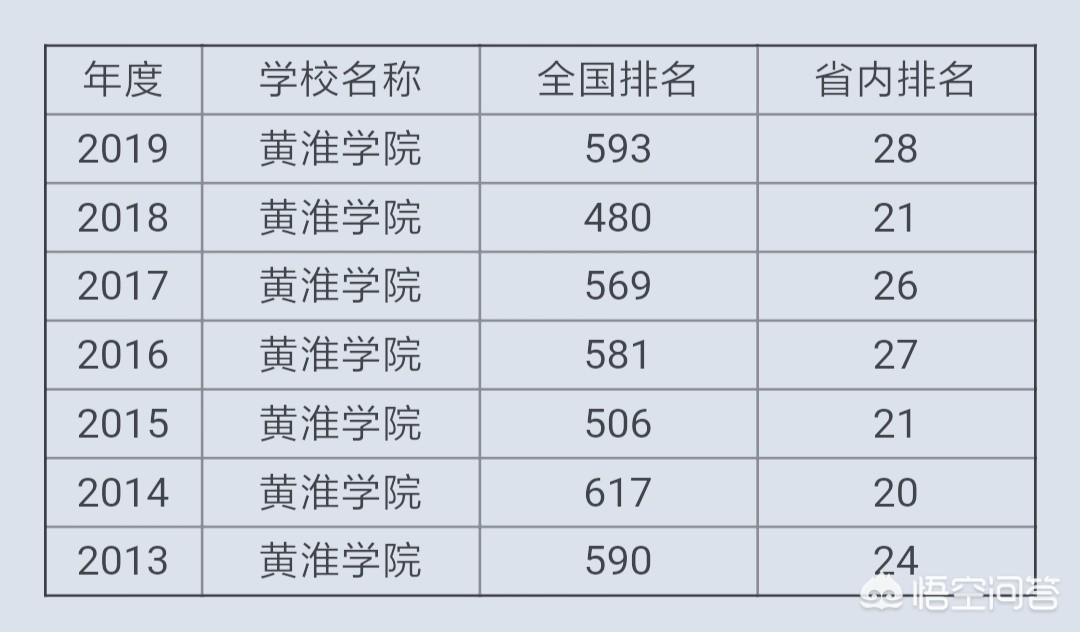 这是黄淮学院最近几年的大概排名情况,大家可以了解一下。最近几年的排名是基本上比较稳定的,大家从这个图片中可以看到,大体的情况确实是这样。