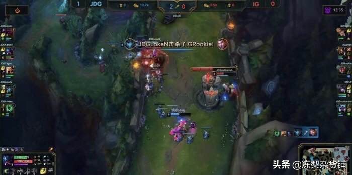 被击杀三人不说,最亏的是Rookie的杰斯,拿出来是打线的,但是0-1开局,前期拿不到优势后期就废了,之后JDG针对中路,Rookie又死了一次。之后JDG下路再次完成对线击杀,IG下路彻底废了,唯一的好处是小乐言发育挺肥的,控制峡谷先锋控小龙,前期还入侵,等级对位领先了两级,是有机会救主的。