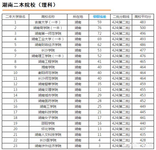 在这个大背景下,湖南省内二本院校已不足20所。在18年二本批次刚好在今天(30日)8:00-18:00进行征集志愿录取,整个二本批次录取尚未完全结束。笔者以2017年理科录取均分对省内二本院校进行一个简单的排序: